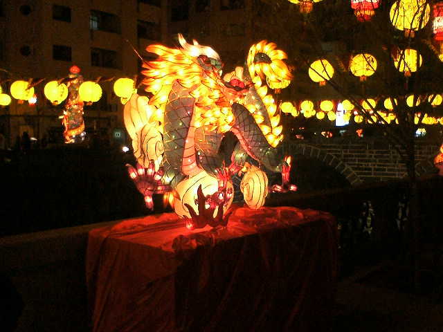 長崎市内の各所にランタンが飾り付けられています。特に、湊公園、中央公園、唐人屋敷、眼鏡橋、興福寺、などの会場では大きめのオブジェが置かれています。案内所で「ランタンオブジェマップ」をもらい、参考にしながら歩いてみました。