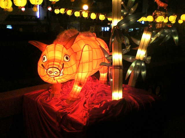 みなと会場にはメインオブジェがあります。今年は猪年なので豚のオブジェですね。諸事如意(ツゥスールゥイー)という名前で何事もうまくいくという意味だそうです。