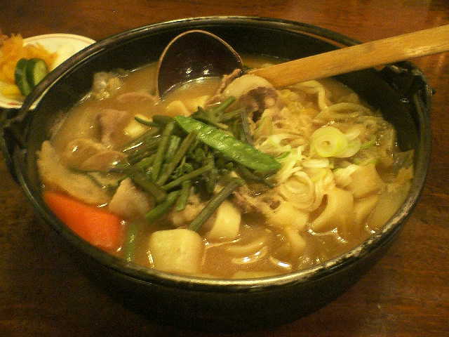 メニューを見てみると、甲府名物のほうとうやすいとんの種類が多いです。2000円とちょっと高めだなと思いつつも、折角の機会なので「猪肉すいとん」を注文しました。猪肉は筋張っているということも無く、とても美味しいです。人参、里芋、ジャガイモ、椎茸、白菜、ネギ、山菜など野菜もたくさん入っており、ここのところの野菜不足を一気に解消できました!