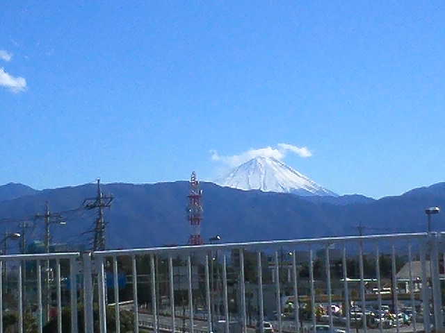 今日はお客さんとの打ち合わせで甲府まで来ています。タクシーで客先に向かう途中富士山がみえました。風が強く、雲が少ないためかとてもきれいです。雪を戴いていて、その頂上付近に雲がかかっている様子がまるで噴火口から蒸気が出ているようです。携帯で撮った写真だといまいち雰囲気が伝わりませんが・・・。SFC修行中、大島ルートで三宅島上空を通過したときにみた火口を思い出しました。
