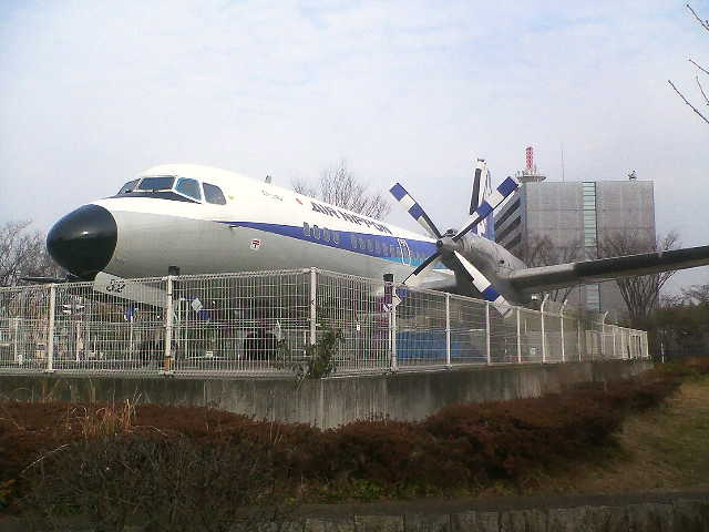 だいぶ疲れてきましたので、帰りは電車を利用することにしました。航空公園駅前には、名機YS-11が設置されています。一度は乗ってみたかった機体です。