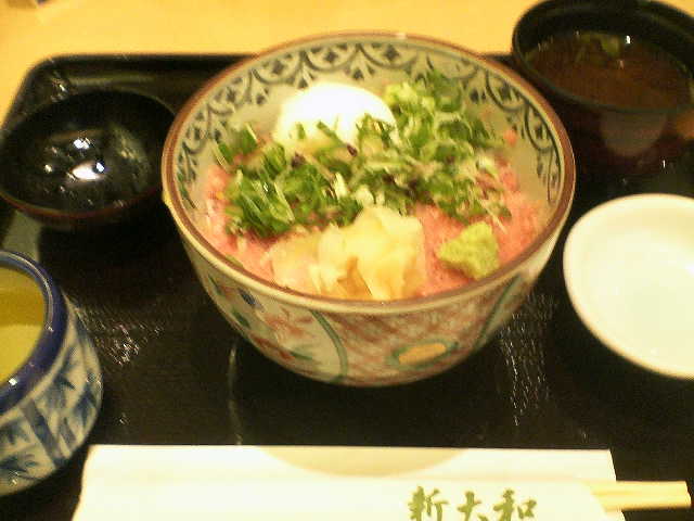 いつものように2軒はしごで、新大和に向かいました。ルシエールとは隣り合っているのですぐですね。こちらも最後まで残っていた大物、ネギトロ丼を注文しました。こちらは、大満足でしたね。特に温泉卵がのっているのが特長的でとても美味しくいただきました。