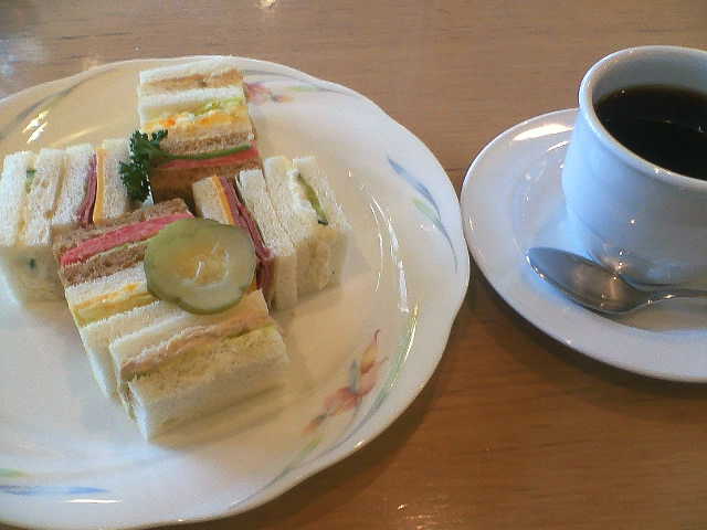 もちろん家を早めに出て、”アメックス定食”をたべてから搭乗します。今日はルシエールのミックスサンドイッチからスタートです。どこにでもある普通のサインドイッチでした。すこしパサパサだったかな。ミックスサンドイッチを食べましたので、デザートと飲み物以外のメニューを制覇したことになります。ほんとは、地中海風ピラフの方を食べたかったのですが、このブログで写真付きアメックスメニューを完成させるという目標に向かって突き進みます。
