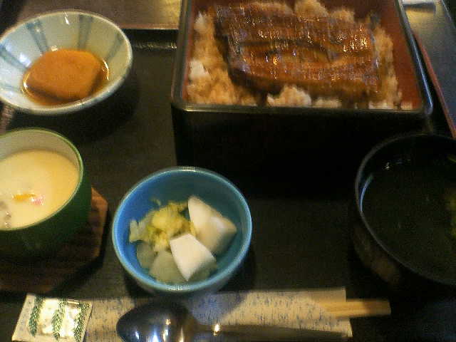 今日の晩御飯は、ちょっと豪華にうな重です!肝吸いと茶碗蒸し、その他一品がついて1200円と結構お得です。会社と家の間にこのうなぎ屋さんがあって、ちょくちょく通っていますが第一の理由はこの店でダイナースカードが使えることですね。真向かいにラーメン屋もあって、こちらも利用しますが、食券制でクレジットカードを使えないのが難点です。日々の食事は小さい金額ではありますが、積もれば結構な額になりますので。