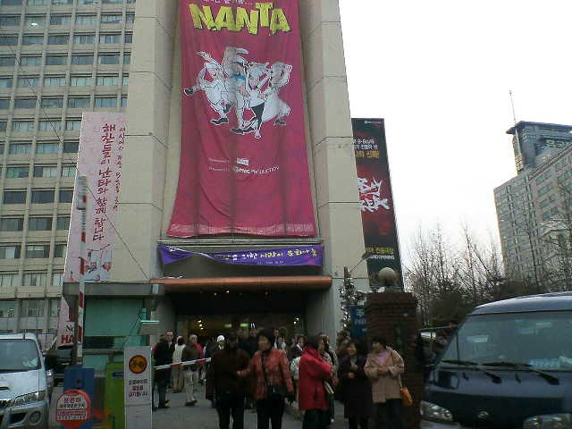 南大門市場から北に上がって行き徳寿宮(トクスグン)を過ぎて、NANTA劇場に向かいました。この劇場、ちょっと分かりにくい場所にありますね。管理人が持っていったガイドブックの地図の一番大事なところが、見にくかったので、たどり着くのに苦労しました。