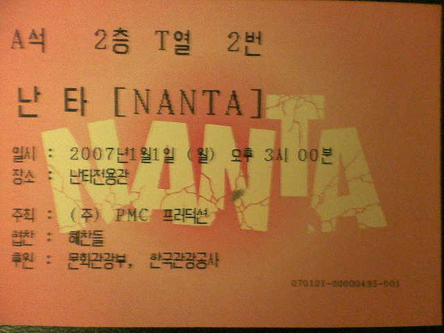 NANTAは厨房を舞台にしたパーカッションのパフォーマンスです。特に時間を調べずにいきましたが、ちょうど3時からの公演に間に合いましたので早速チケットを購入です。しつこいようですが、支払いはダイナースですよ!ステージの内容は詳しくは実際に現地で見ていただきたいと思いますが、観客参加型でとても楽しめるステージでしたよ。お勧めです。