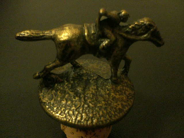 ブラントンは私の好きなバーボンの一つです。写真を見ていただくと分かりますが、キャップが面白くて馬の形をしています。いままで気付かなかったのですが、全部で8種類の形があるらしく、全てあわせると、騎手が馬を走らせてる様子を再現できます。そうと知ると集めずにはいられませんね!最低でもあと7本のボトルをあけなければなりませんが・・・。