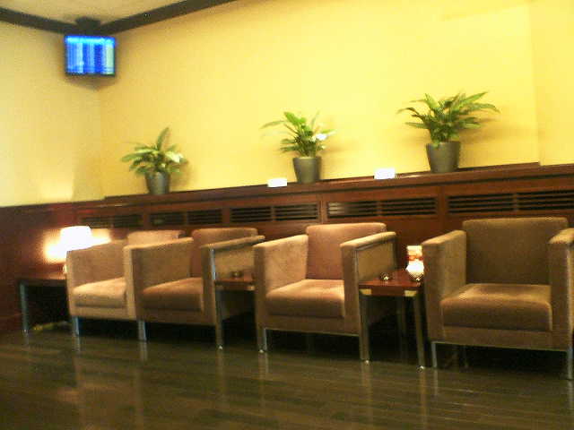 実は第2ターミナルには、カードラウンジが2つあって、一つはゲートの外、もう一つはゲートの中にあります。ゲート内のラウンジには今まで行ったことが無いので、今回は訪れてみました。見せるのはもちろんダイナースクラブカードです。ここ、案外いいですね。離れた場所にあるからか人も少なくゆったりしてます。調度品も高級感あふれています。写真は喫煙ルームです。ソファの肘掛が高いのが良くないかな。ただ、全体的には、もしかしたらANAのsignetラウンジより良いかもしれません。(SFCとる必要なくなっちゃうじゃん・・・)