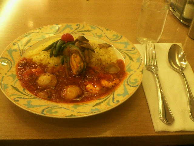 羽田空港に戻ったら、「ルシエール」にてタダ飯です!アメックスメニューは店員さんが、エプロンの中から出しますが、人によってよれよれなメニューだったりします。今回はきれいだったな。今回は「地中海風ピラフ」を頼んでみました。これ、かなり美味しいです。お気に入りに追加しました。