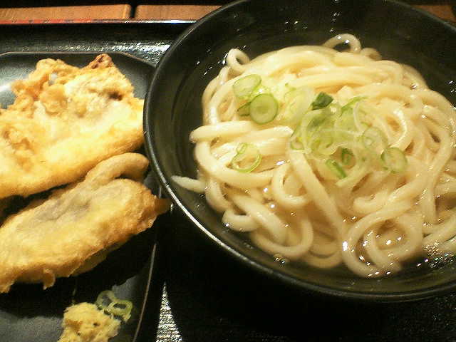 私は、ちくわ天ぷら、なすの天ぷら、豚バラの天ぷらを選びました。この豚バラの天ぷら、とてもおいしいです。最初口にした瞬間は塩味がちょっときついかなと思いましたが、それくらいのほうがうどんに合うようです。これを食べるためだけで、もう一回行ってもいいかなと思いました。ただ残念だったのが、うどんが少しのび気味だったことですね。タイミングが悪かったのかな。